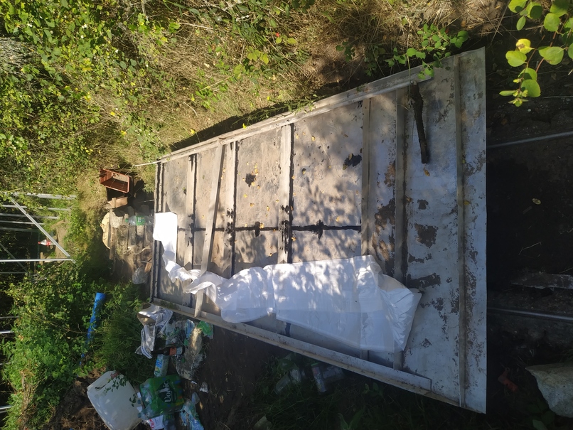 Finally, the tub is simply planted with any bushes rooting as shallowly as possible. The door grows closed over the coming years. Today it is so light that you can pull and push it loosely with one arm. Required force for pushing xkg weight is 4% of xkg.